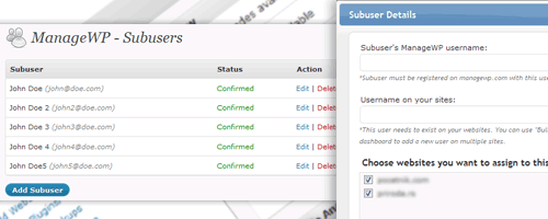 For now, subusers will only be able to use the remote dashboard to login into your sites, and what are they able to do in your blog is restricted with the user role you give them. You can use the new ‘Bulk add users’ tool to add a new user on all of your sites that your subuser will use.